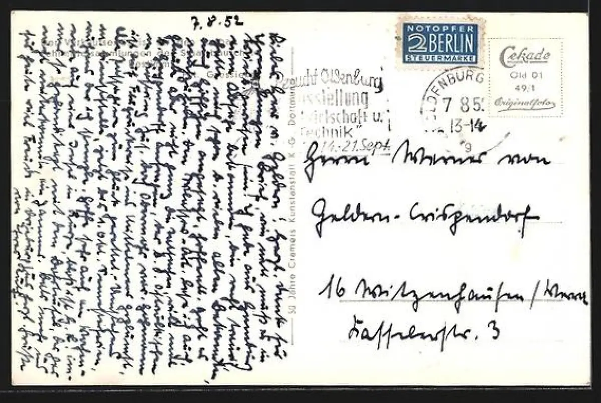 alte Ansichtskarte, gelaufen 1952, Briefmarke entfernt, guter Zustand