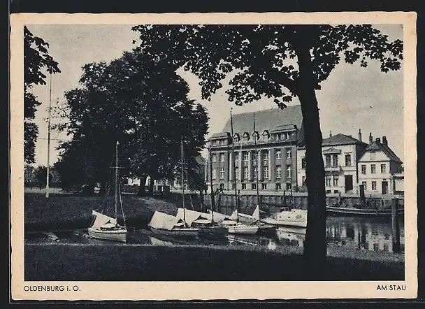 AK Oldenburg / O., Partie am Stau, Segelboote