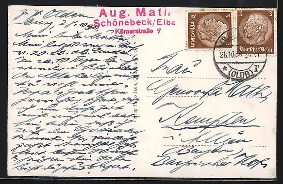 alte Ansichtskarte, gelaufen 1934, kl. Einriss li. oben, guter Zustand