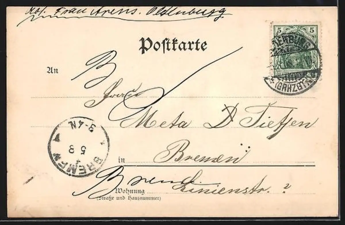 alte Ansichtskarte, gelaufen 1908, Stempelspur, guter Zustand