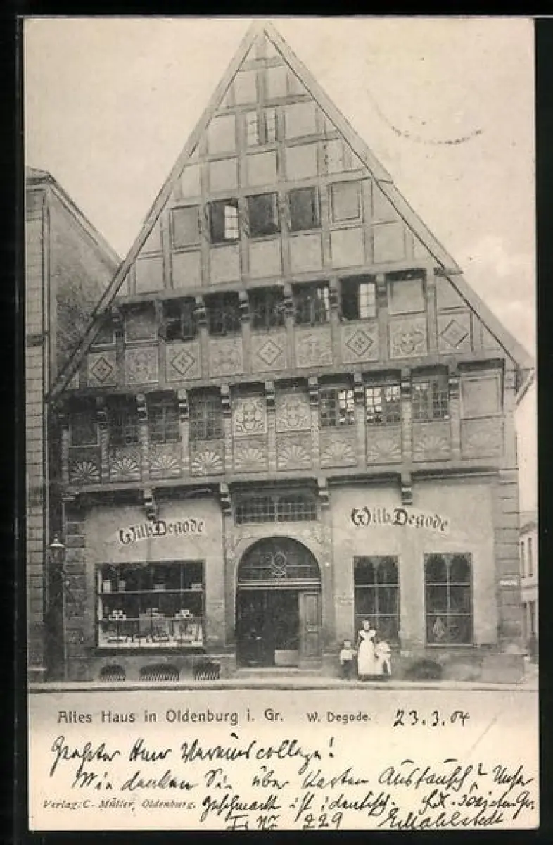 AK Oldenburg i. Gr., Altes Haus, Geschäft Wilh. Degode
