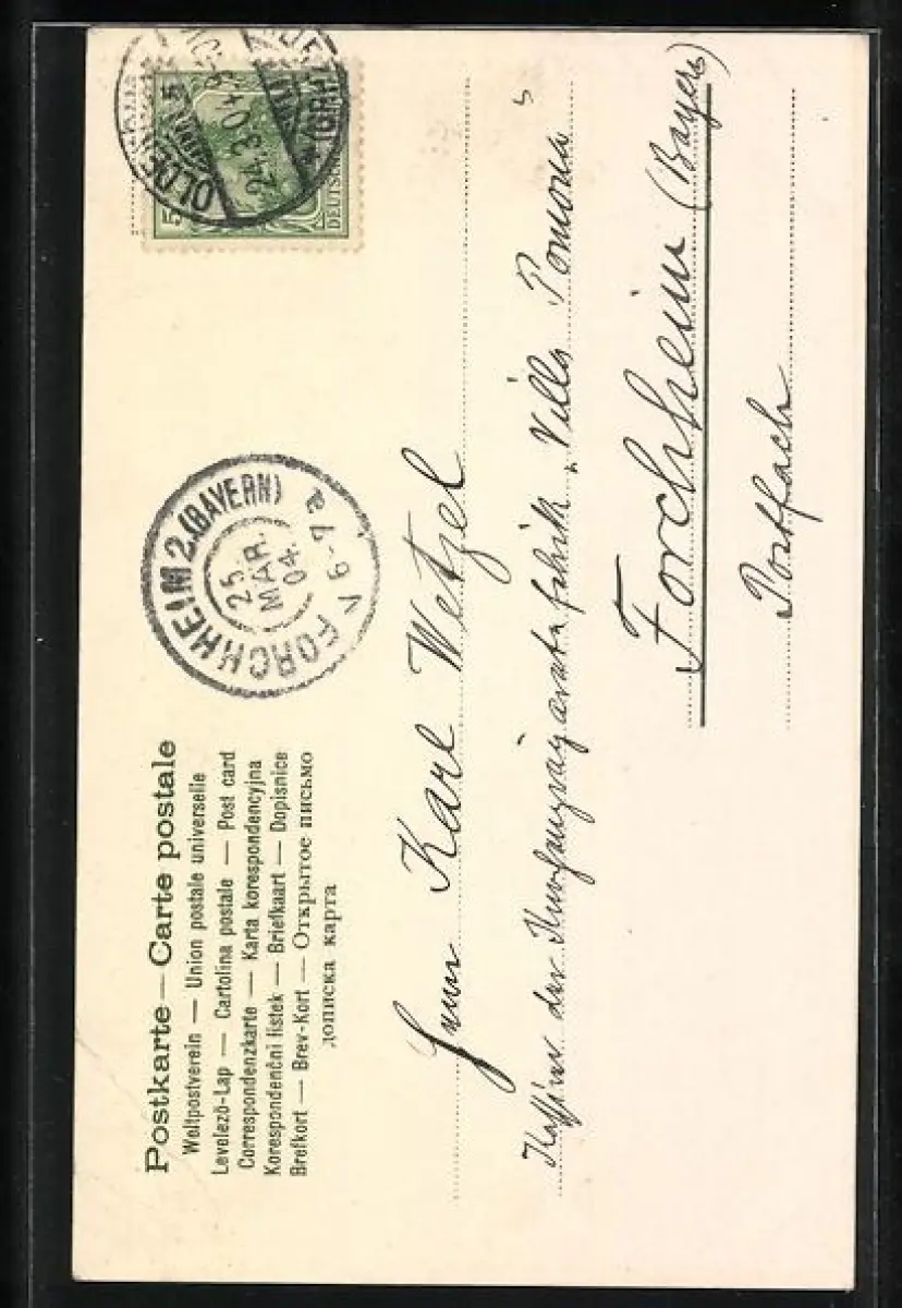 alte Ansichtskarte, gelaufen 1904, Stempelspur, guter Zustand