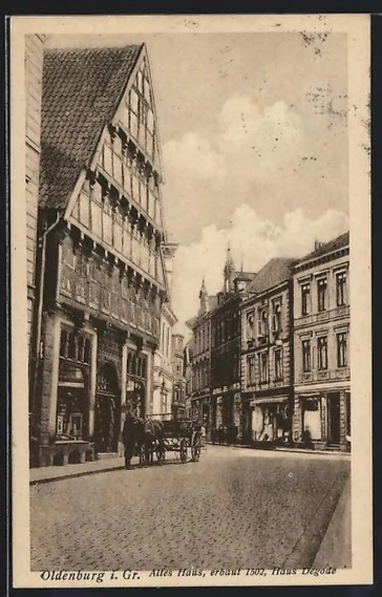 AK Oldenburg i. Gr., Altes Haus erbaut 1502, Haus Degode, Strassenpartie