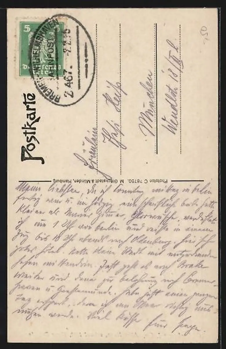 alte Ansichtskarte, gelaufen, Stempelspur, guter Zustand