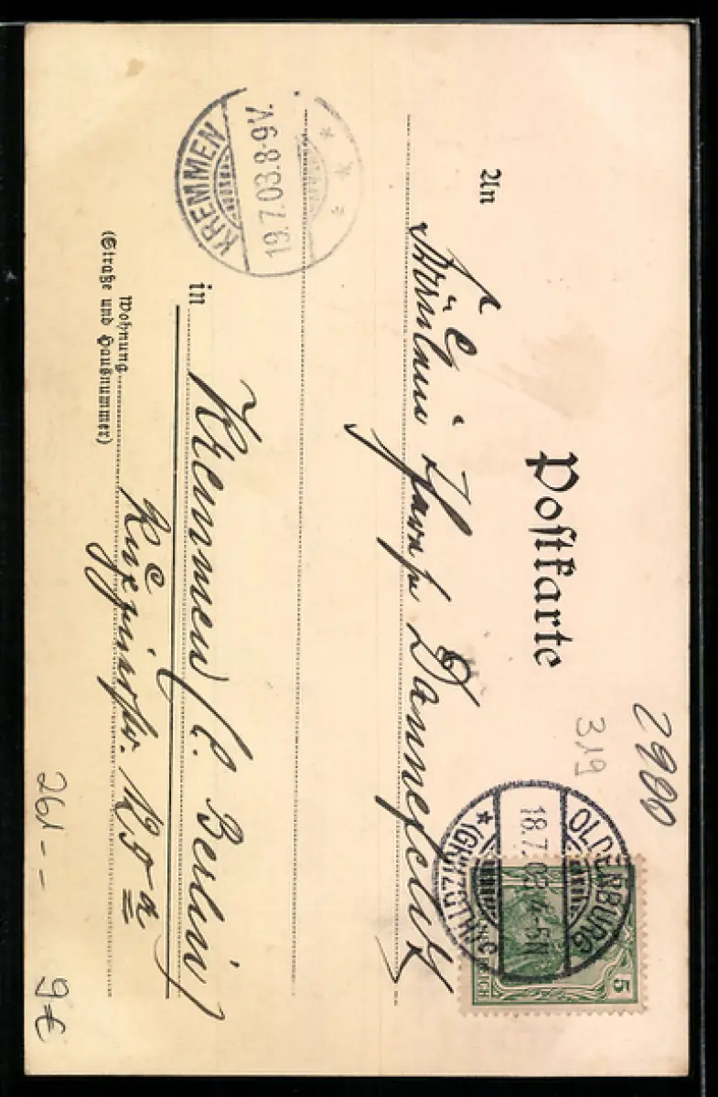 alte Ansichtskarte, gelaufen 1903, guter Zustand
