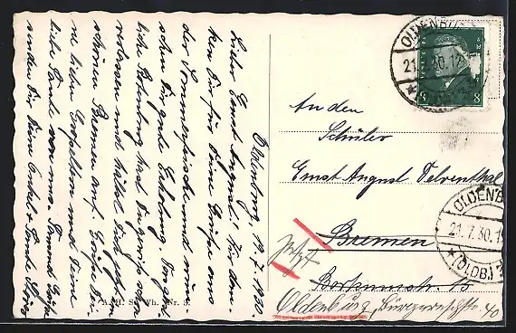 alte Ansichtskarte, gelaufen 1930, Stempelspur, guter Zustand