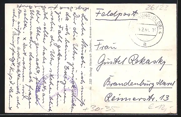 alte Ansichtskarte, gelaufen 1941, guter Zustand