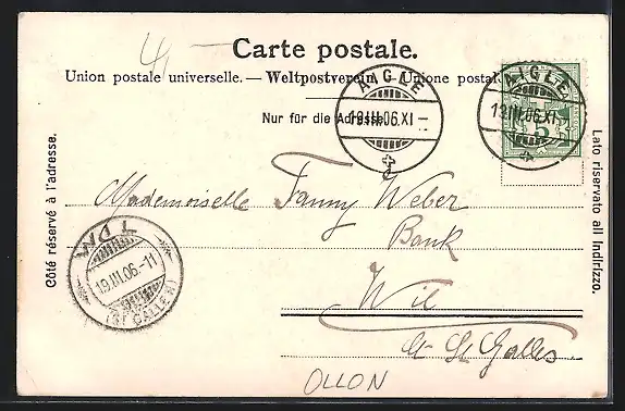 alte Ansichtskarte, gelaufen 1906, Stempelspur, guter Zustand
