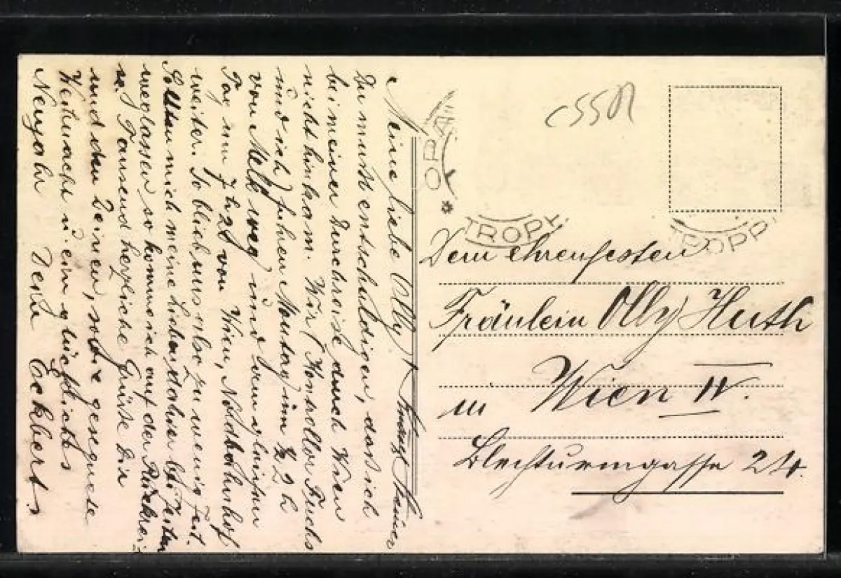 alte Ansichtskarte, gelaufen, Briefmarke entfernt, guter Zustand