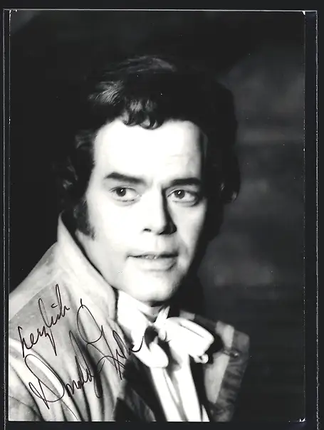 AK Opernsänger Donald Grobe im Kostüm mit weisser Schleife, mit original Autograph
