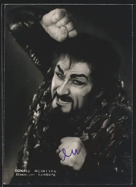 AK Opernsänger Donald Mcintyre mit erhobenen Fäusten, mit original Autograph