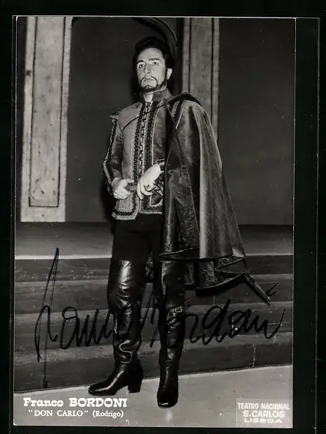 AK Opernsänger Franco Bordoni als Rodrigo in Don Carlo, mit original Autograph
