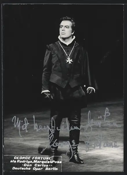 AK Opernsänger George Fortune als Rodrigo u. Marquis v. Posa in Don Carlos, mit original Autograph