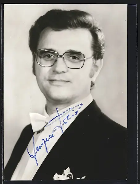 AK Opernsänger Jürgen Freier im dunklen Anzug mit weisser Fliege, mit original Autograph
