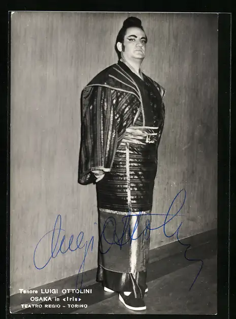 AK Opernsänger Luigi Ottolini als Osaka in Iris, mit original Autograph