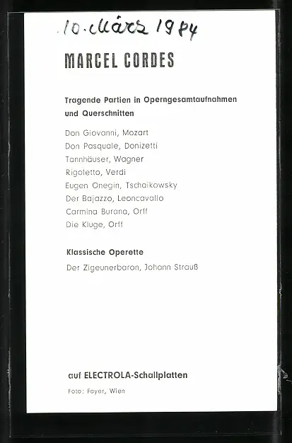 AK Opernsänger Marcel Cordes schaut zur Seite, mit original Autograph