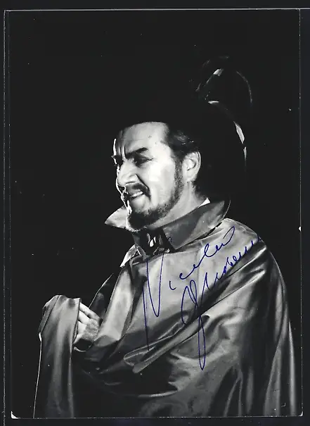 AK Opernsänger Nicolai Ghiaurov in einer Szene, mit original Autograph
