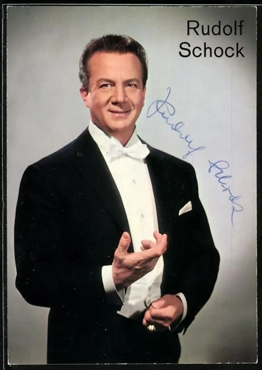 AK Opernsänger Rudolf Schock im Anzug mit Fliege und Autograph