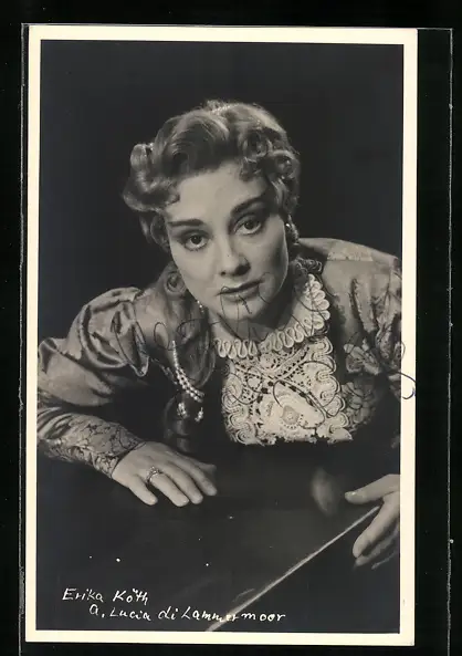 AK Opernsängerin Erika Köth beugt sich über den Tisch, mit original Autograph