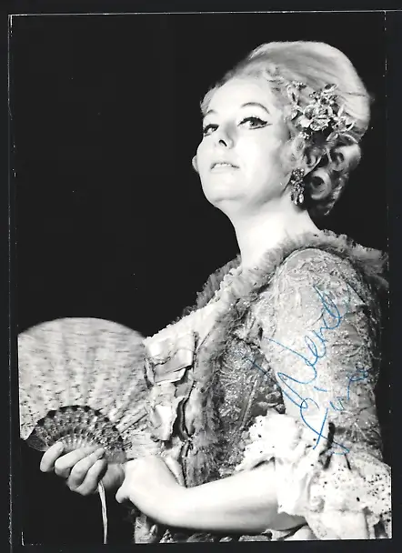 AK Opernsängerin Wendy Fine mit Fächer, mit original Autograph