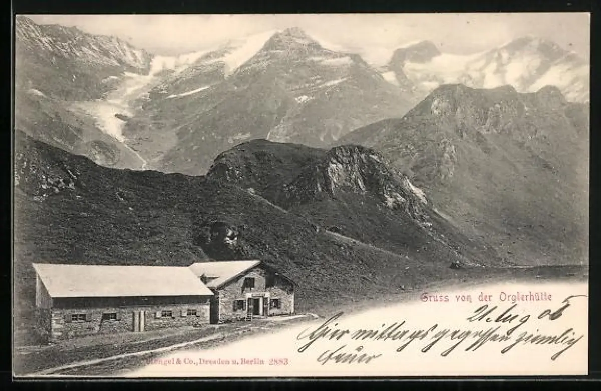 AK Orglerhütte, Ansicht mit Gipfelpanorama