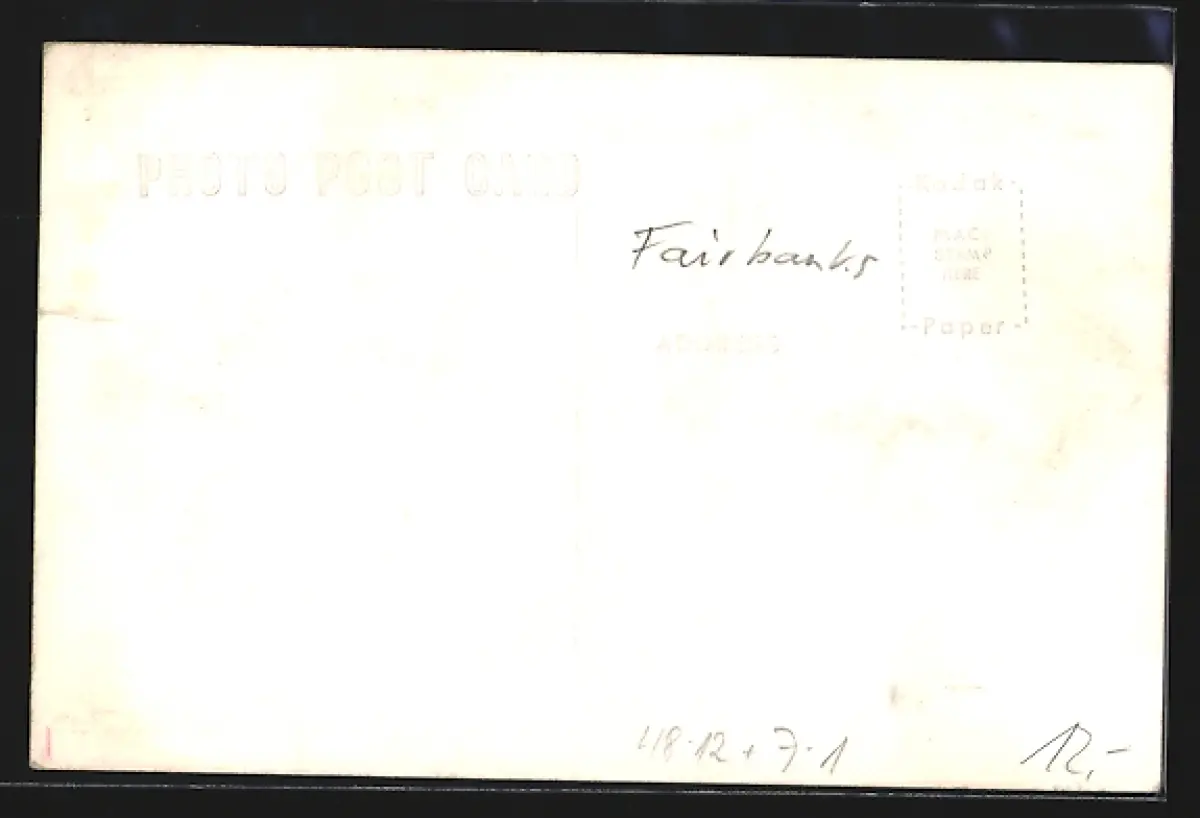 Personenbezogene Daten auf der Rückseite der Karte wurden durch blauen Textmarker unkenntlich gemacht. Die blauen Stellen sind auf die Vorderseite durchgeweicht und wirken sich negativ auf das Postkartenfoto aus