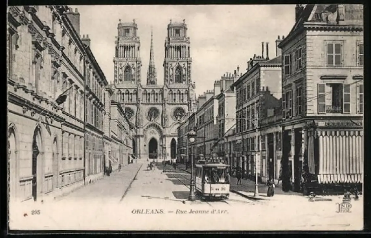 AK Orleans, Rue Jeanne d`Arc, Strassenbahn
