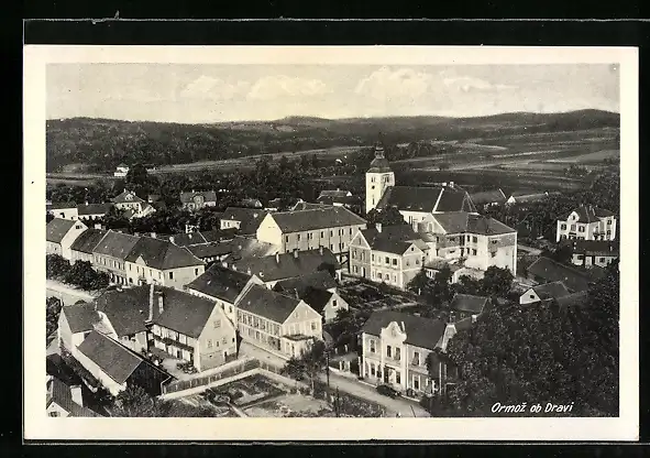 AK Ormoz ob Dravi, Teilansicht mit Fernblick aus der Vogelschau