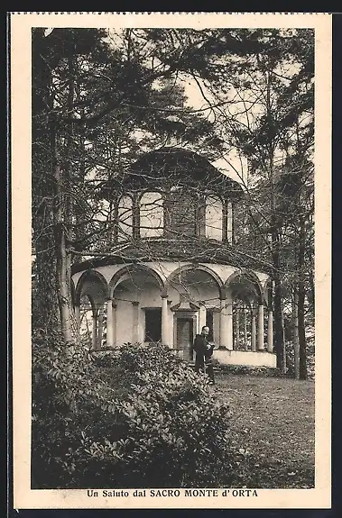 AK Orta, Sacro Monte d’Orta, Kirche mit Mönch