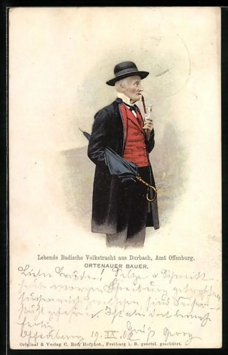 AK Ortenauer Bauer mit Pfeife in Badischer Tracht