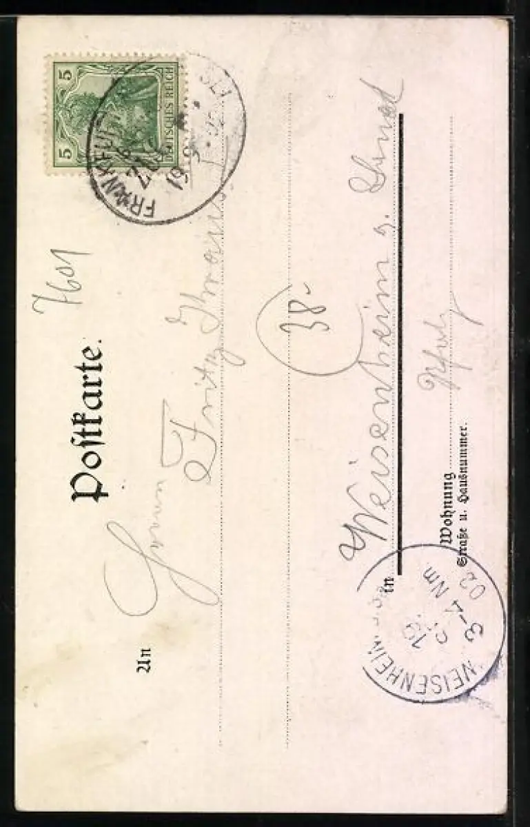 alte Ansichtskarte, gelaufen 1902, Stempelspur, guter Zustand