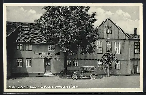 AK Ortshausen a. Harz, Gasthof Friedrich Ackenhausen mit Auto