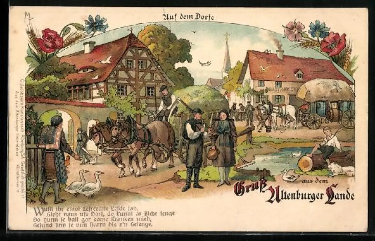 AK Ortspartie im Altenburger Lande, thüringische Trachten