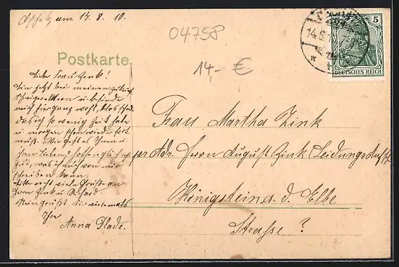 alte Ansichtskarte, gelaufen 1910, guter Zustand