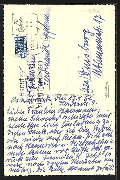 alte Ansichtskarte, gelaufen 1952, Briefmarke entfernt, guter Zustand