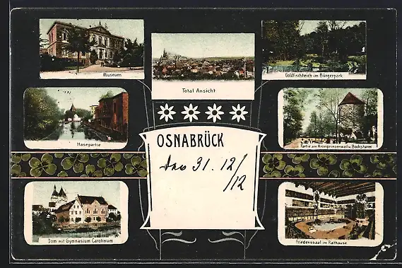 AK Osnabrück, Dom mit Gymnasium Carolinum, Museum, Friedenssaalim Rathause