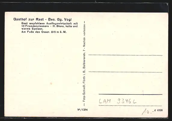 AK Osser, Gasthof zur Rast, Bes. Gg. Vogl