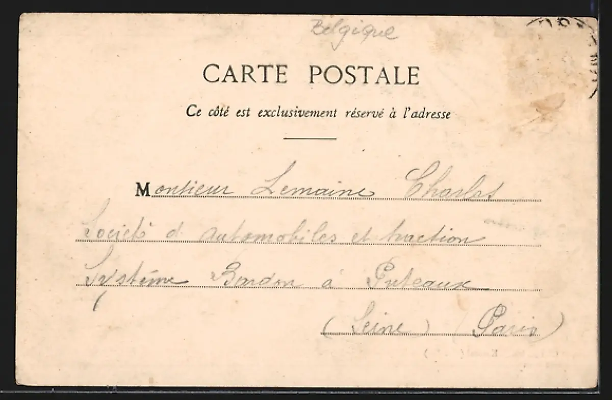 alte Ansichtskarte, gelaufen, Briefmarke entfernt, rückseitig Oberflächenschaden, Eckknicke oben, guter Zustand