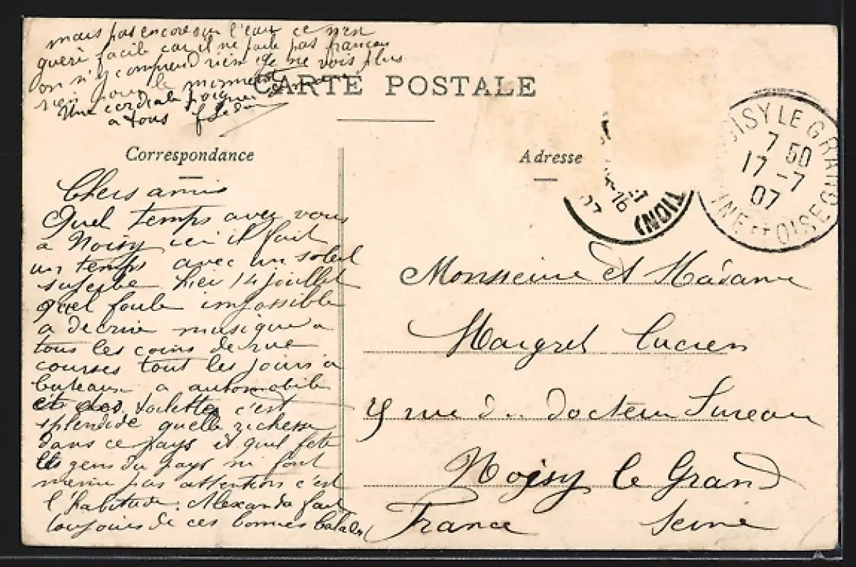 alte Ansichtskarte, gelaufen 1907, Eckknick unten li., Briefmarke entfernt, Bugspur oben Mitte, Stempelspur, guter Zustand