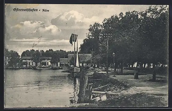 AK Osternothafen, Allee am Ufer mit Segelbooten