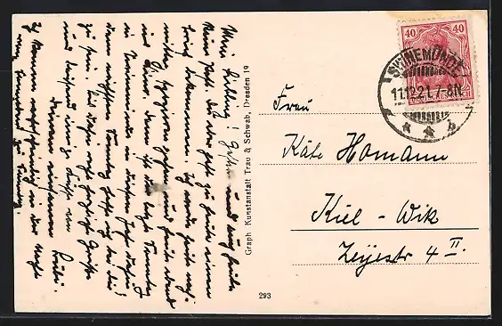 alte Ansichtskarte, gelaufen 1921, Eckknick li. oben, guter Zustand