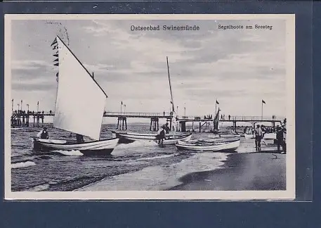 AK Ostseebad Swinemünde Segelboote am Seesteg, gelaufen von 1930