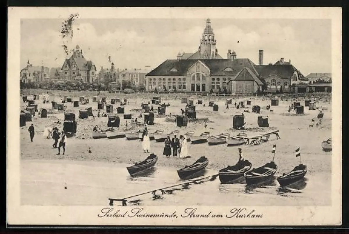AK Ostseebad Swinemünde, Strand mit Kurhaus