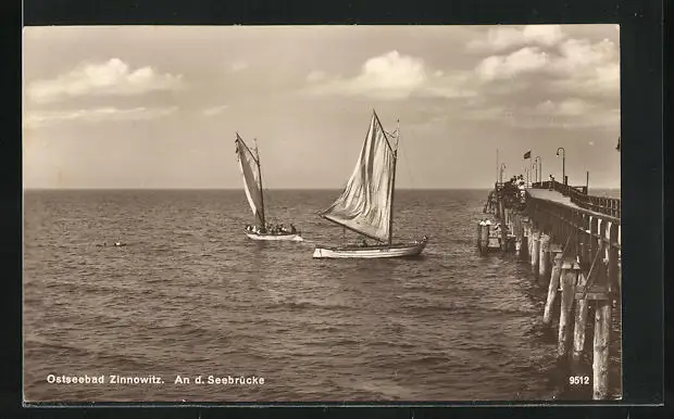 AK Ostseebad Zinnowitz, Segelboote an der Seebrücke