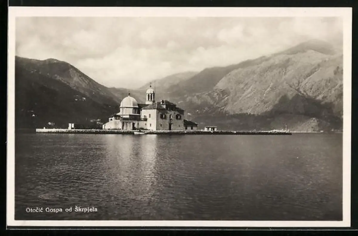 AK Otocic Gospa od Skrpjela, Panorama mit Kirche