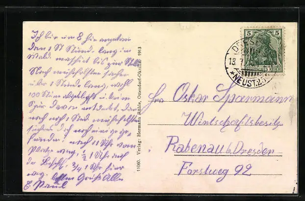 alte Ansichtskarte, gelaufen, Abriebspuren oben mittig, guter Zustand