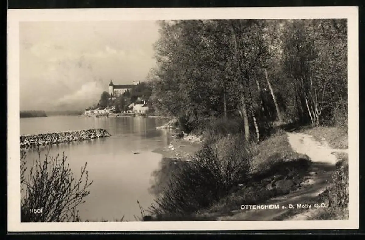 AK Ottensheim a. D., Donauufer mit Ortsansicht