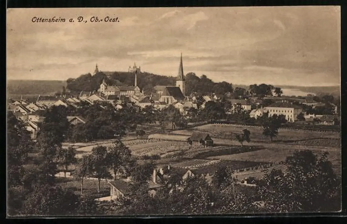 AK Ottensheim a. D., Ortsansicht mit Feldern