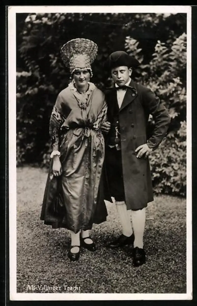 AK Paar in Alt-Villinger Tracht, Schwarzwälder Tracht