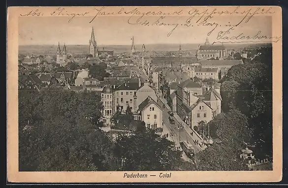 AK Paderborn, Ortsansicht mit Strassenbahn